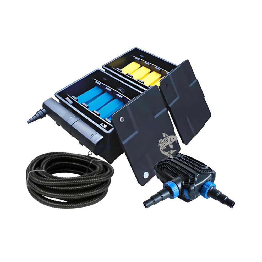 Beztlakový filtrační set pro jezírka obsahuje filtr, UV lampu a čerpadlo F-12000 a 5m hadice 1 1/4". Je vhodný pro okrasné nádrže do 25m3 a s koi do 8m3.
