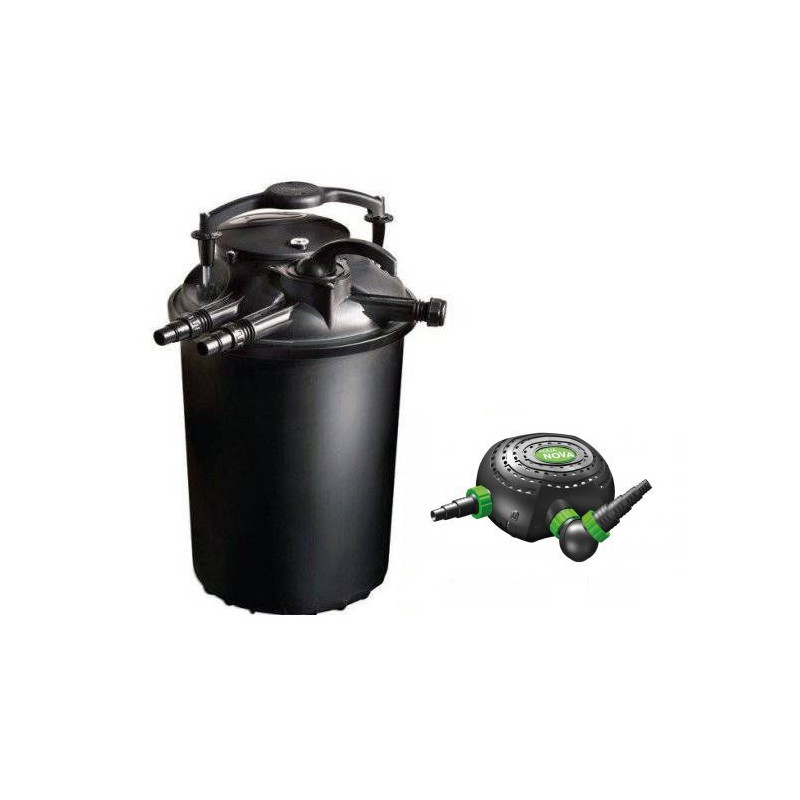 Tlakový filtr pro jezírko funguje jako biologicko-mechanické filtrace. UV-C lampa působí na plovoucí řasy a sráží je do větších celků, které pak umí odfiltrovat média ve filtru. Voda se čistí přes několik vrstev filtračních hmot a čistá se vrací zpět do jezírka nebo na vrchol potůčku či vodopádu do výšky více než 1 m.