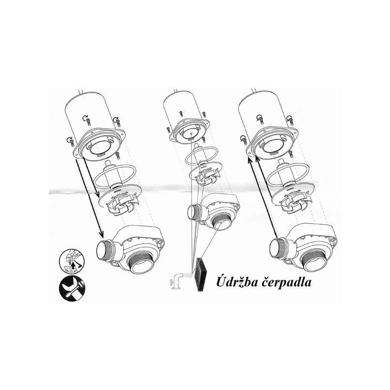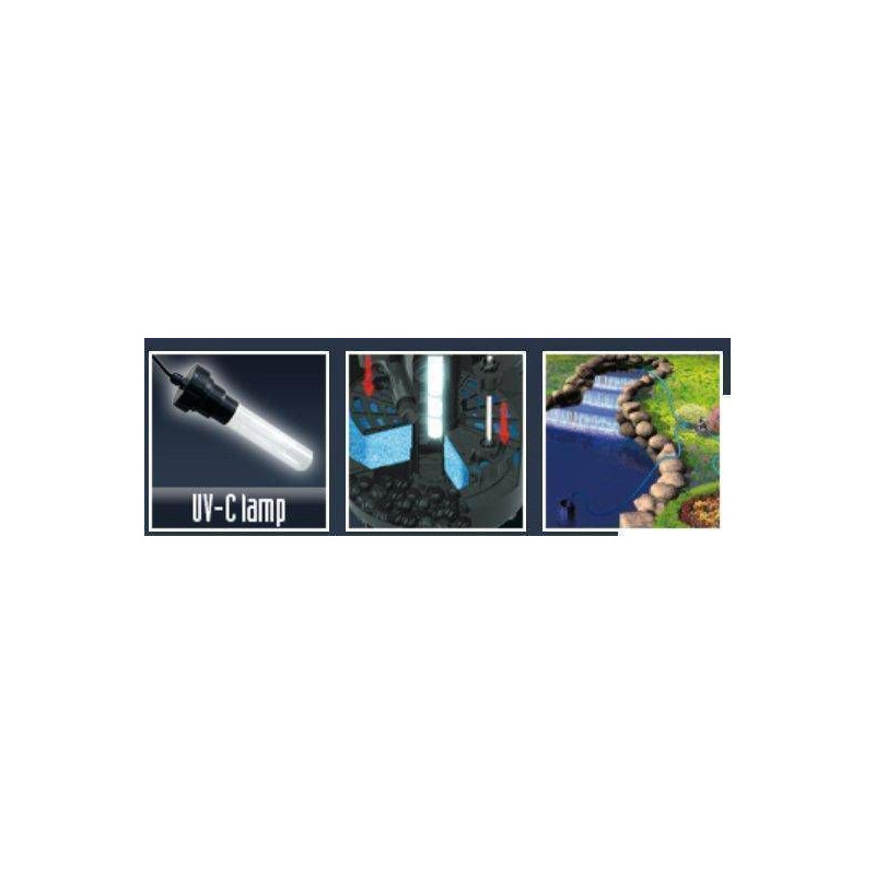 Čerpadlo spojte pomocí hadice s filtrem. Vstup je označen šipkou. Na výstup z filtru (šipka ven) připojte hadici a její konec umístěte do vody nebo na vrchol potůčku nebo vodopádu. Čerpadlo vložte do vody a připojte k el. proudu. UV lampu připojte k el. síti. Všechny UV-C zářivky je třeba měnit každoročně, nejlépe na počátku sezony, za nové. Údržbu čerpadla je třeba provádět