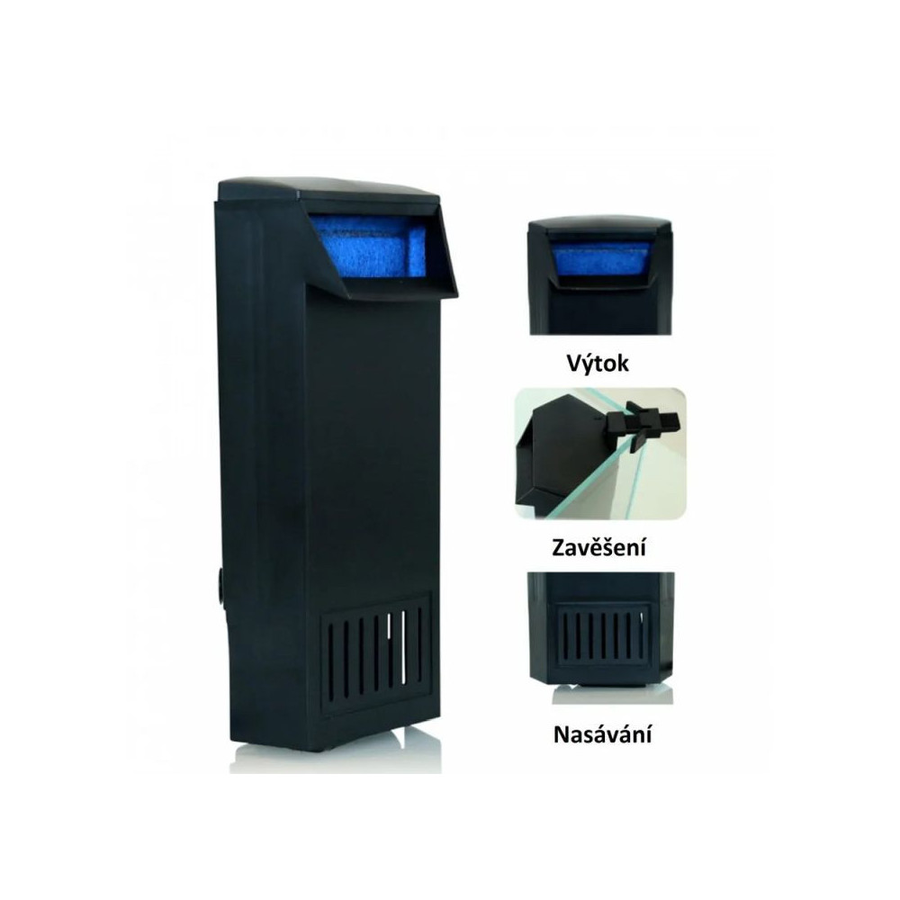 Filtr je navržen pro rychlou a jednoduchou instalaci. Stačí jej zavěsit na okraj nádrže, kde zůstane pevně umístěn. Vyjmutí filtru je stejně snadné jako jeho instalace, což usnadňuje údržbu.