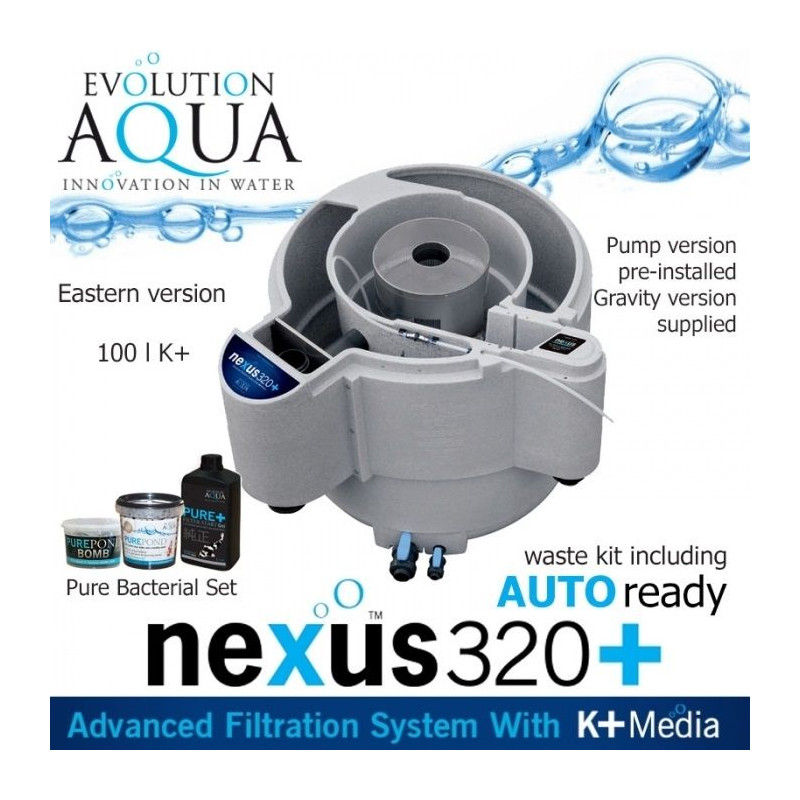 Nový, vylepšený a ještě výkonnější model se systémem Vortex je nejprodávanější jezírková filtrace na trhu, která svým designem a účinností překonává filtry Tripond Center Vortex C. Filtrace renomované značky Evolition Aqua Nexus Easy je oceňována uživateli již řadu let jako nejlepší filtrace na trhu. Model Nexus 320 Plus Eastern je nejvýkonnějším modelem firmy Evolution Aqua, vysoce profesionální filtrace s extrémně jednoduchým čištěním a údržbou, pro veškeré druhy okrasných, koupacích a koi jezírek. V nové ještě účinnější verzi s použitím K1 Micro média v mechanické Eazy části filtrace. K čištění se používá kompresor běžně vzduchující do biologické části. Řada Vortex Nexus EAZY, to je díky technologickému návrhu, zpracování a Kaldnes mediu na 100% nejúčinnější biologická a díky K1 Micro i mechanická filtrace na trhu v této cenové kategorii. Model 320+ Eastern je dodáván společně se 20 litry K1 Micro v mechanické části a 100 l K+ v biologické části. Možné rozšíření až na 300 litrů K1, nebo K+ do biologické části.