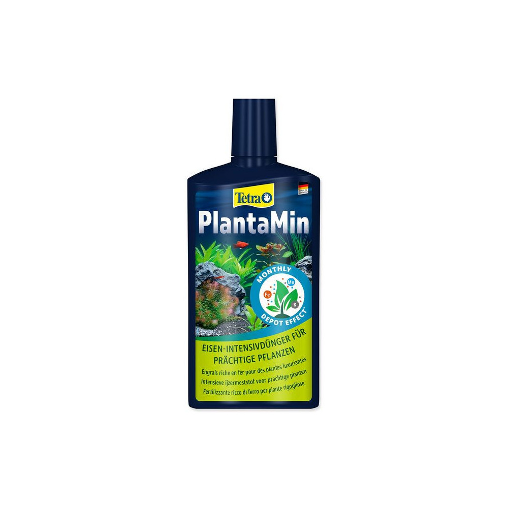 Hnojivo PlantaMin obsahuje železo, které je nejdůležitějším stopovým prvkem pro akvarijní rostliny. Plantanin obsahuje také další plnohodnotné stopové prvky a veškeré důležité hlavní živiny např. dusík. Posiluje rostliny zaručeným dlouhodobým účinným působením výživných látek. Zajišťuje sytou zeleň listů a neobsahuje nitráty ani fosfáty.