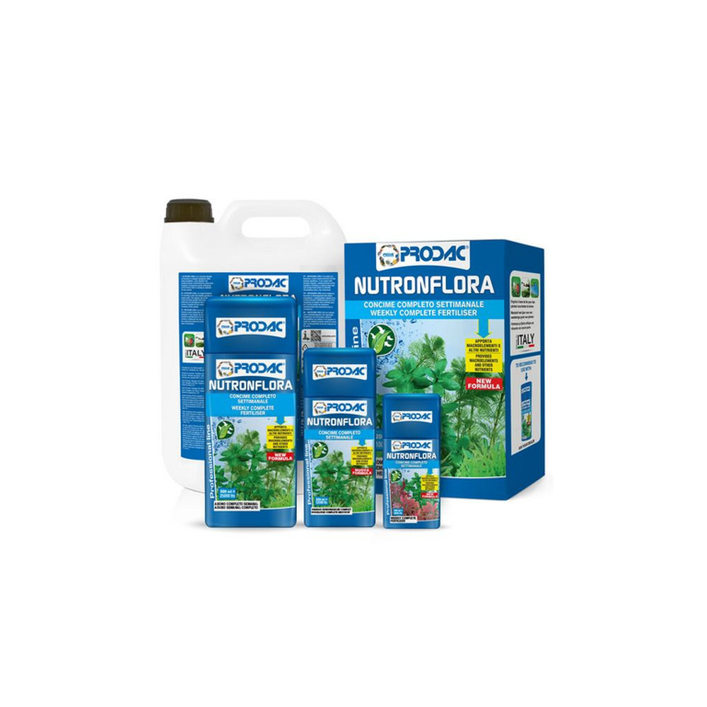 Hnojivo pro akvarijní rostliny Prodac Nutronflora Professional 500ml v nové vylepšené formuli, kdy roztok má s vyšší koncentrací a nižším dávkováním, čímž dodává rostlinám přímo a cíleně dusík, fosfor a draslík (navýšené množství mg/l)