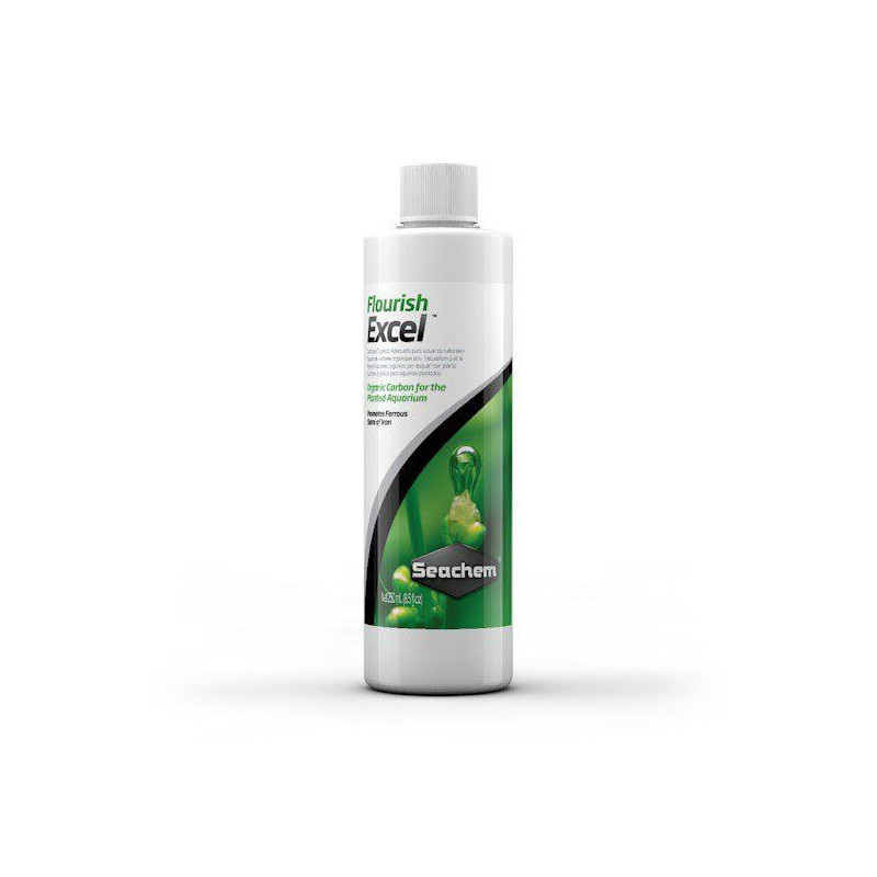 Seachem Flourish Excel obsahuje organický uhlík ve formě glutaraldehydu, který slouží jako alternativa k oxidu uhličitému (CO2) pro podporu růstu rostlin.