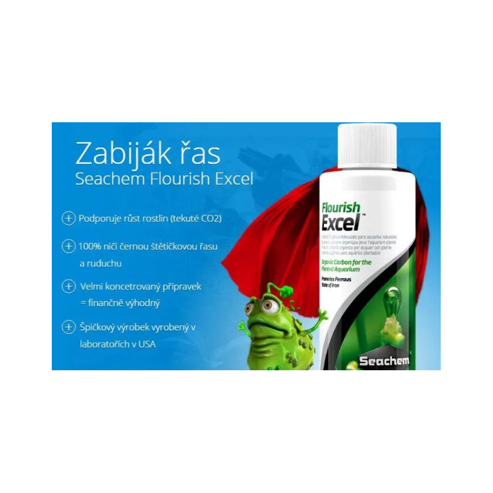 Seachem Flourish Excel je vysoce účinný tekutý zdroj organického uhlíku, který podporuje rychlý a stabilní růst akvarijních rostlin. Uhlík je jedním z nejdůležitějších stavebních prvků rostlinných pletiv, a jeho nedostatek se v akváriu rychle projeví zastavením růstu, blednutím listů nebo výskytem řas. Flourish Excel poskytuje rostlinám snadno dostupnou formu uhlíku, která funguje jako alternativa k CO₂ systému.