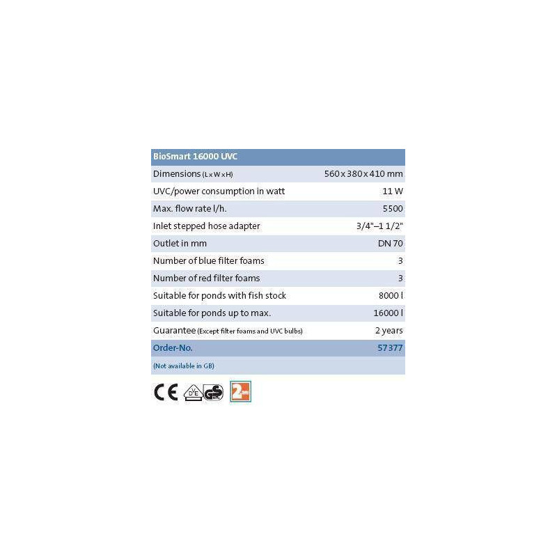 Trápí vás zakalená voda nebo přemnožené řasy? OASE BioSmart UVC 16000 je vysoce účinný průtokový filtr, který kombinuje mechanicko-biologické čištění s integrovanou 11W UV technologií. Je navržen tak, aby zajistil průzračně čistou vodu a optimální prostředí pro život ve vašem jezírku do objemu až 16 m³.