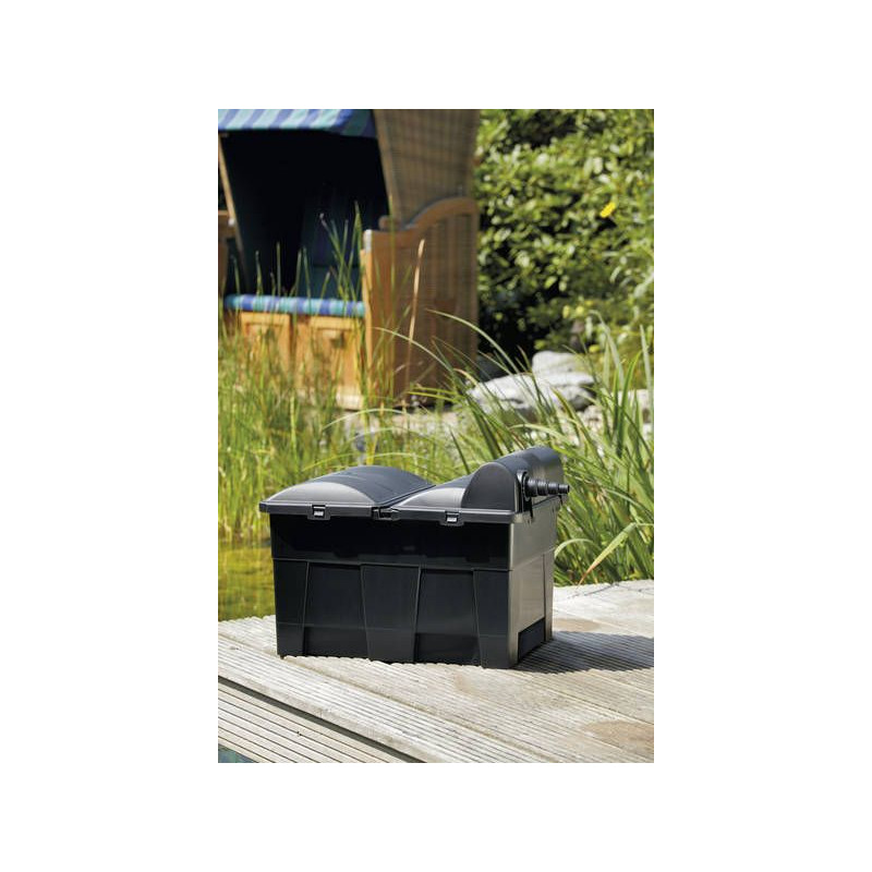 OASE filtrace BioSmart UVC 16000 kombinuje účinné metody mechanického a biologického čištění s vestavěnou UV lampou 11W, což zajišťuje čistotu a zdraví vody pro vaše jezírko. Jednoduše připojíte k vašemu čerpadlu.