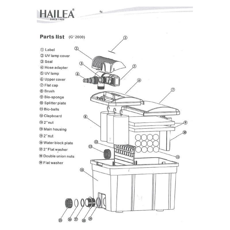 Jezírkový filtr Hailea G12000 s UV lampou 13 W patří mezi gravitační filrace pro zahradní jezírka. Rybniční filtr pro čistění zahradních jezírek dosahuje úplného účinku, nasadíme-li bakterie pro jezírka do filtru. Čistící bakterie naleznete v oddělení Startovací bakterie. Jezírkové bakterie se množí lve vodě o teplotě 10°C a více. Voda z filtrace vytéká samospádem.