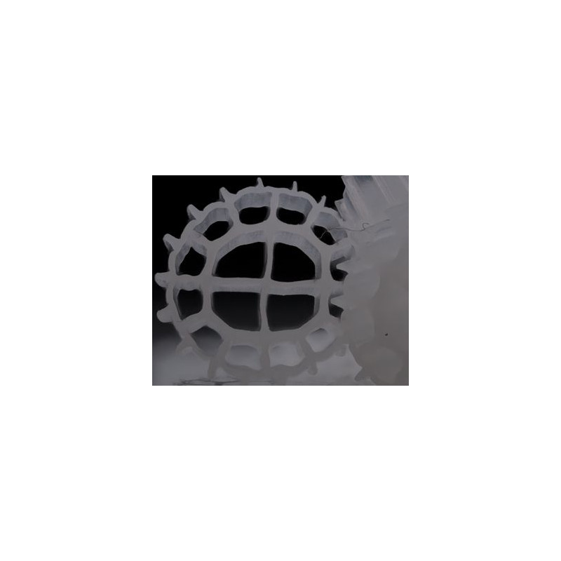- Přídavek těchto minerálů vytváří na médiu drsný povrch . Tento texturovaný povrch má mikroskopickou plástev vrcholků a kráterů, které umožňují shromažďování odpadních částic a tvorbu nitrifikačních bakterií .