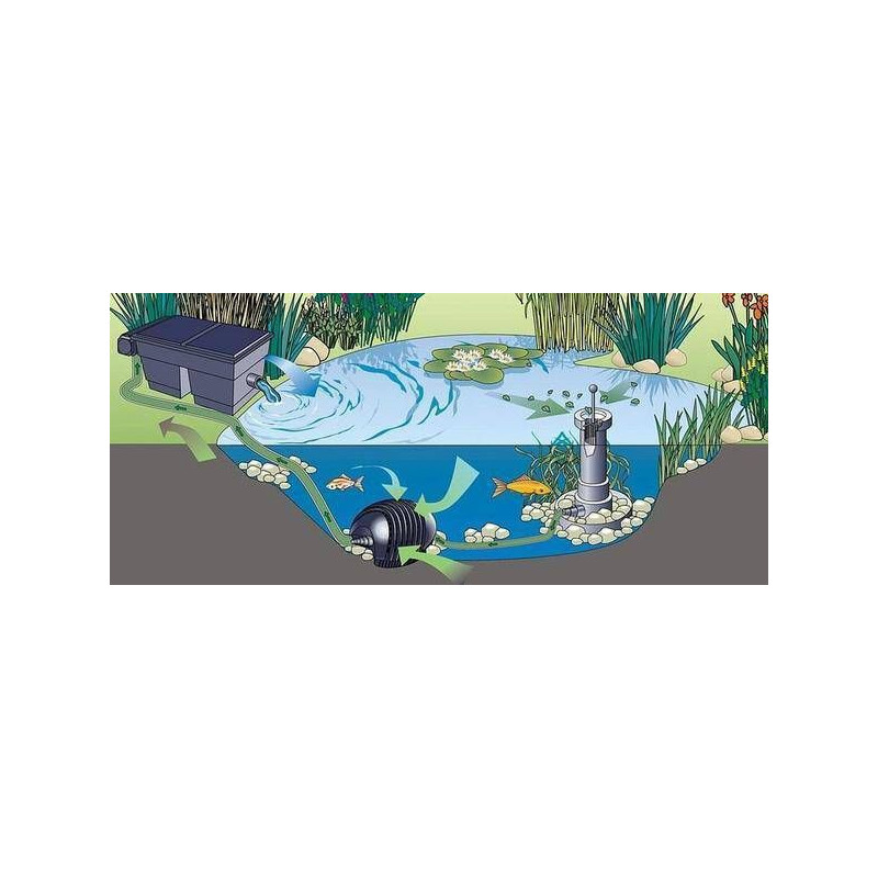 Filtrační set do jezírek Omega 2 (náhradní výrobce) pro nádrže do 50.000 l, pokud jsou určené pro koupání nebo jako okrasná bez osádky ryb. S osazení menším počtem ryb typu karas a jesen do 20 m3 a s Koi 10-12 m3 vody.
