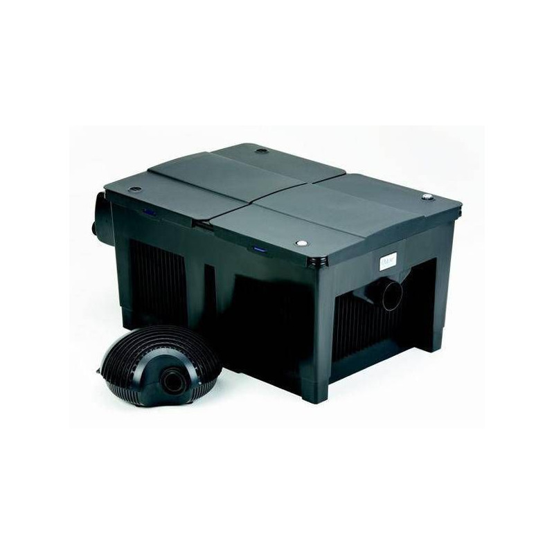 Průtočná filtrační sada pro okrasné jezírko 36000 l o velikosti 30 m3, s rybami (ne KOI) 18 m3 vody, s KOI kapry do10 m3 vody. Filtrační set pro jezírka obsahuje značkovou gravitační filtraci Biosmart 36000, což je gravitační jezírkový filtr OASE,UV zářič 36W CUV 236 s UVC zářivkou, 5 m hadice, čerpadlo do jezírka, potoky a vodopády Pondomax Eco 11000.