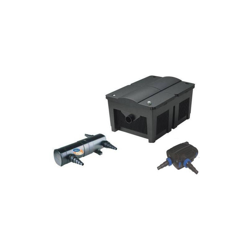 Průtočný AV filtrační set pro okrasné jezírko do 36000 litrů obsahuje gravitační filtr Biosmart 36000, UV zářič 36W CUV 236 s UV-C zářivkou, 5 m hadice a čerpadlo do jezírka , na potoky a vodopády Heissner Akwado CTF8000 s duálním sáním pro skimmer. Filtrační set pro zahradní jezírka do velikosti 36.000 litrů, s rybami (ne KOI) 18 m3 vody, s KOI kapry do10 m3 vody.
