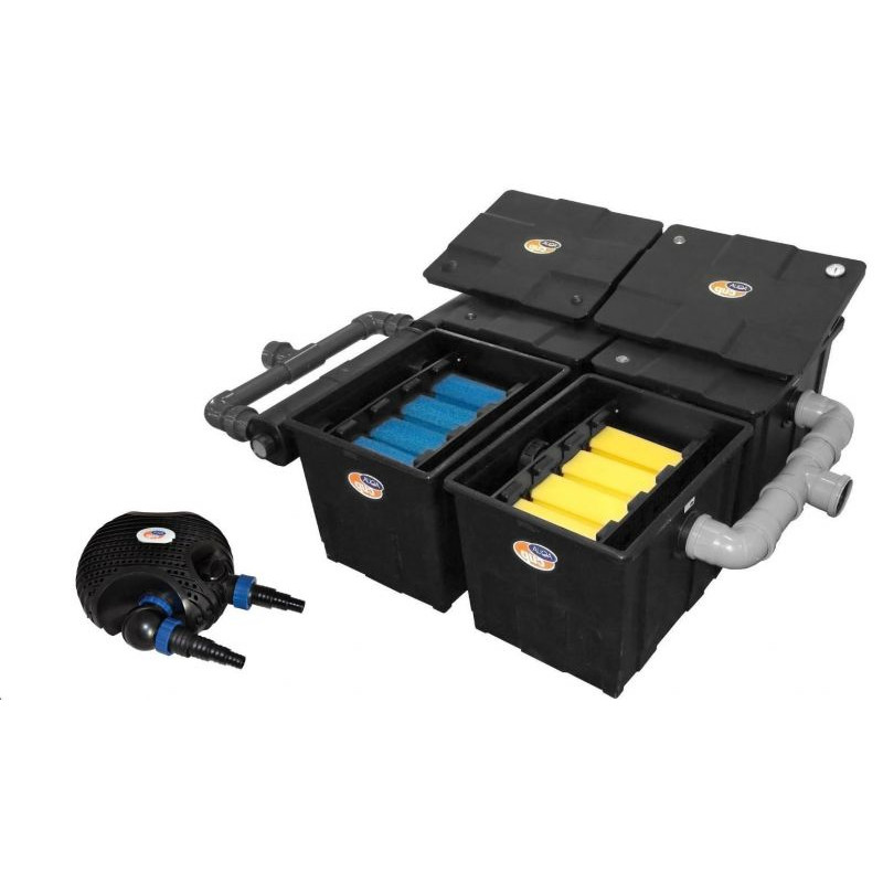 - Vícefázové čištění: Unikátní kombinace kokosových rohoží pro záchyt hrubých nečistot a hustých filtračních houbiček (modré a žluté) zajišťuje dokonalou mechanicko-biologickou filtraci.