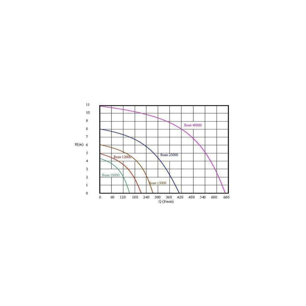 - Extrémní cirkulace a výtlak: Čerpadlo Boss 25000 s výtlakem 8 metrů umožňuje umístit filtraci i do větší vzdálenosti nebo do kopce k prameni potoka, aniž by došlo k výrazné ztrátě průtoku.