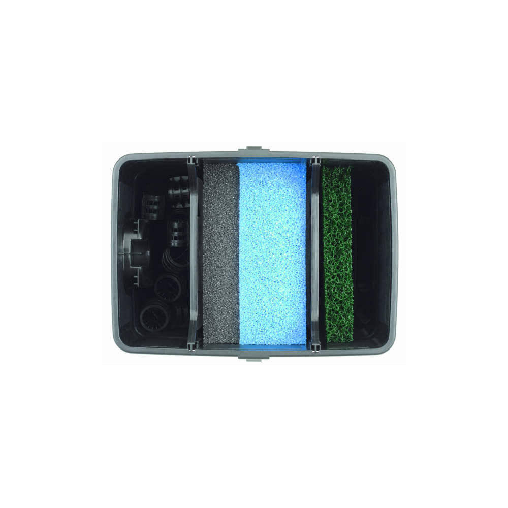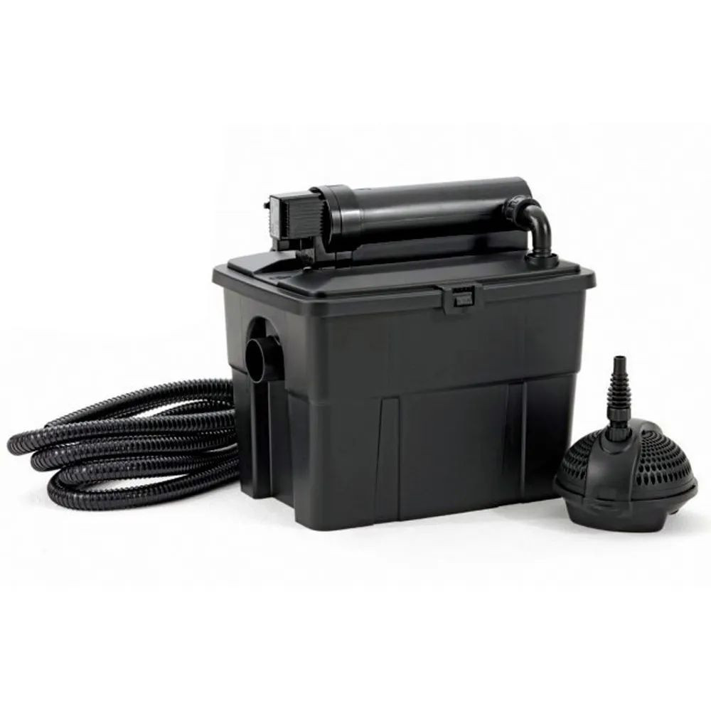 Výkonná filtrace: Set obsahuje výkonný filtr a UV lampu, která účinně eliminuje řasy, bakterie a nečistoty, aby voda zůstala křišťálově čistá.