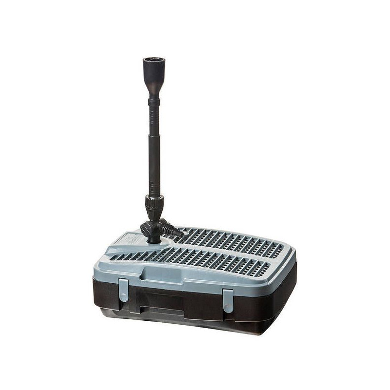 Rybníčkové čerpadlo s filtrem Heissner FA2000 UV a vestavěnou UV-C lampou. Malá ponorná filtrační sada (jezírkový set) pro okrasné jezírko do 5m3 (bez ryb), s rybami 2,5m3 (ne KOI). Nový ponorný filtrační set s integrovanou UV lampou 11W a LED-kontrolkou je určeno pro okrasné rybníčky do 5000 litrů. Celoplošný filtrační povrch s mechanickou regulací stupně filtrace zaručuje prodloužení intervalu mezi nutnou údržbou.