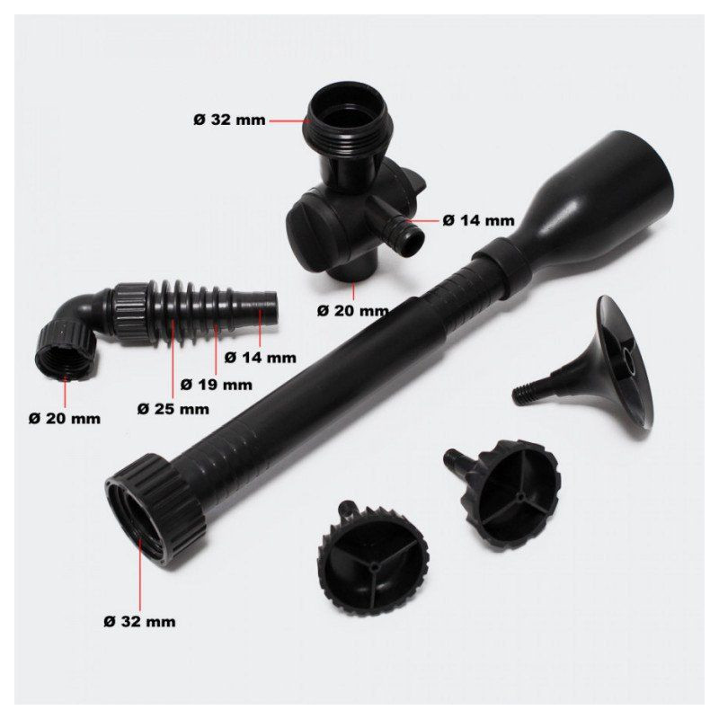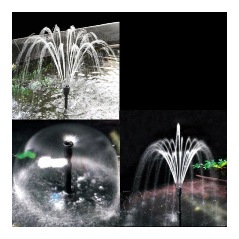 Set filtrace CUF-2500 má kvalitní fontánový výstup. Má čtyři různé trysky zodpovědné za konečný tvar fontány. Přídavná výpusť a fontánka mají regulaci průtoku, díky které můžete plynule a přesně regulovat množství přiváděné vody.