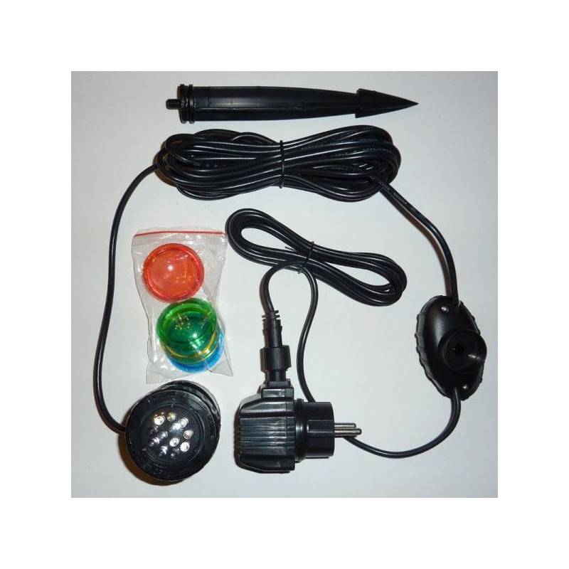 AquaForte světlo do jezírka LED HP1-1 s transformátorem a vyměnitelnými barevnými skly, díky kterým můžete změnit barevný tón osvětlení. Reflektor můžete používat ve vodě i na souši.