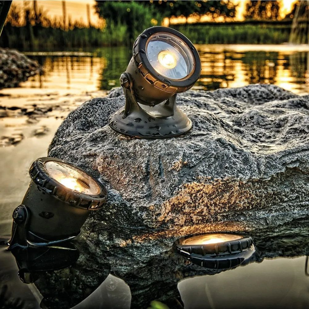 PondoStar LED warm Set 3 zcela ponořitelná světla zářící teple bíle. Jezírkové reflektory v sadě tří kusů se hodí také jako zahradní osvětlení. Umožní osvětlit nejen vodní hladinu, ale i okolní vegetaci.