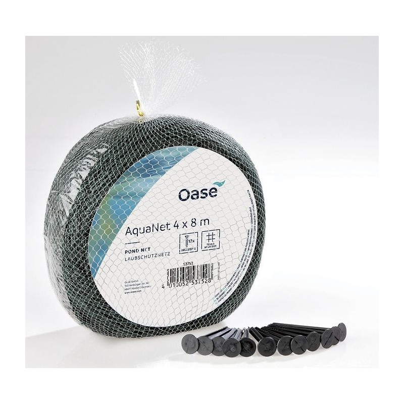 Krycí síť na rybníček (jezírko) AquaNet 2 (4 m x 8 m) proti listí - ochranná síť na jezírko. Jezírková síťka OASE Aquanet patří mezi krycí sítě, které můžete použít na bazény. Síť přes jezírko zabraňuje, aby do rybníčku padalo listí, větve a jiná cizí tělesa a nedocházelo tak ke zhoršování kvality vody. V sezóně je možné předcházet znečištění vodní hladiny zapojením jezírkového skimmeru a filtračního čerpadla pro zahradní rybníčky. Síťka Aquanet s hustými oky z materiálu odolného vůči povětrnostním vlivům je velká 4 m x 8m. Je dodávána jako komplet s 12 stabilními bodci k jednoduchému napnutí a upevnění na okrajích jezírka.