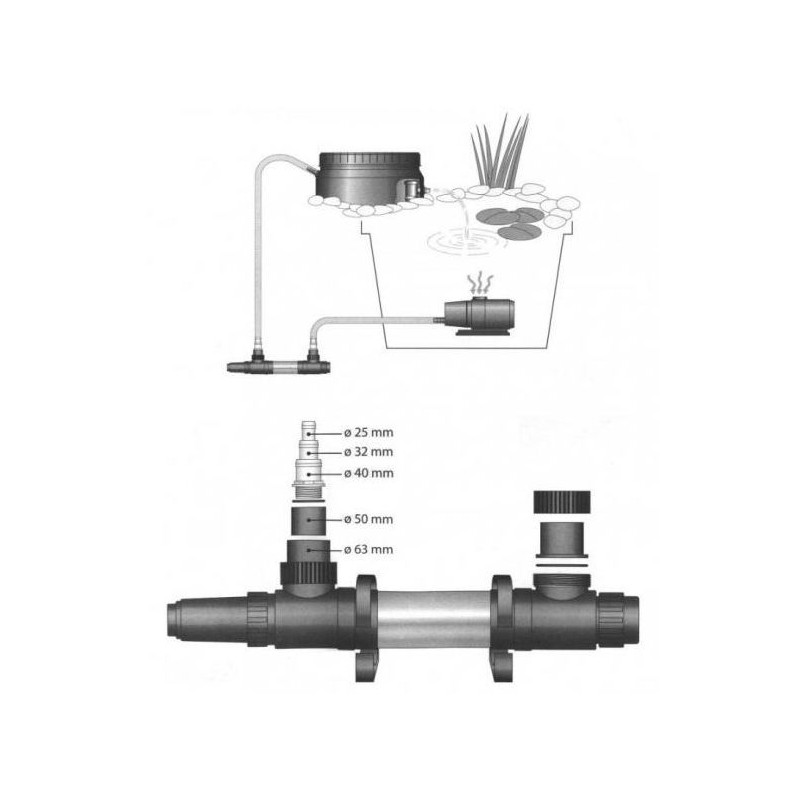 • Připojení na 63/50 mm lepením nebo hadicovým trnem 25/32/40mm (1",1 1/4", 1 1/2").