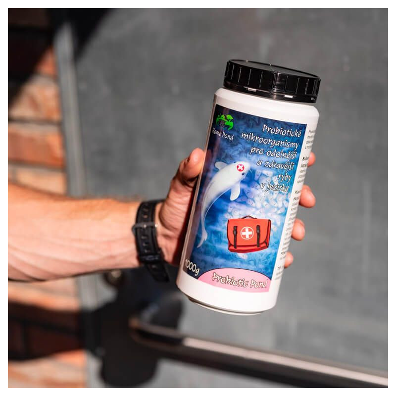 Probiotic Pond v tomto balení je až na 100m3 vody. Pomáhá zlepšovat obranyschopnost ryb vůči nemocem, a hlavně virům jako například KOI herpes virus či jarní virémie KOI kaprů, jež se nedají vyléčit. Je dokázáno, že probiotika předchází {probiotic, probiotika pro ryby} bakteriálním infekcím a snižují u ryb výskyt vnitřních parazitů a napomáhají lepší tvorbě ochranného slizu na povrchu těla ryb. Pravidelné dávkování bakterií Probiotic Pond jak přímo do vody či jako suplementace (obohacení) krmné dávky při krmení ryb, vede k celkové lepší kondici, větším přírůstům a vybarvení ryb. Ryby lépe zvládají přezimování a stresové podmínky jako velká letní vedra či snížení rozpuštěného kyslíku ve vodě.