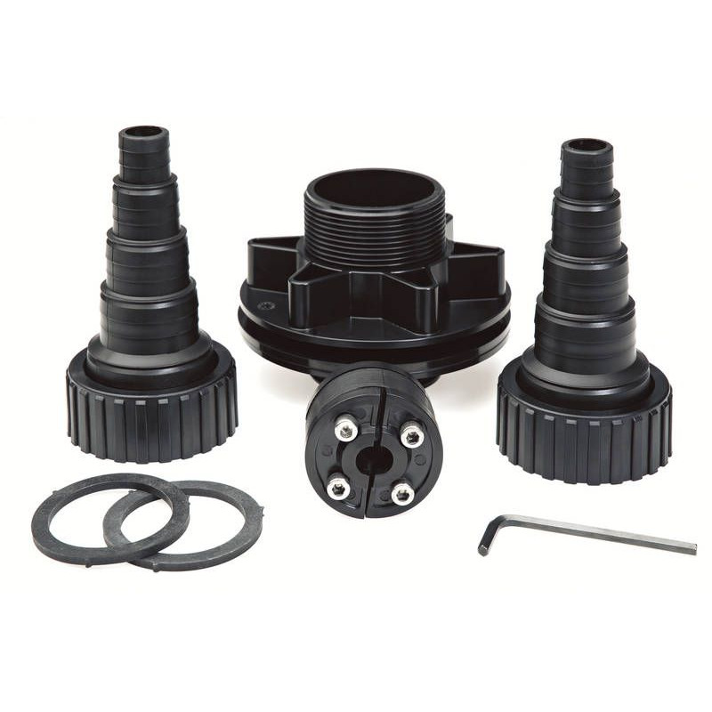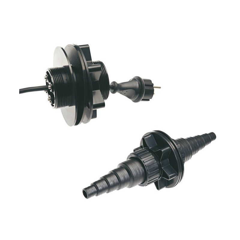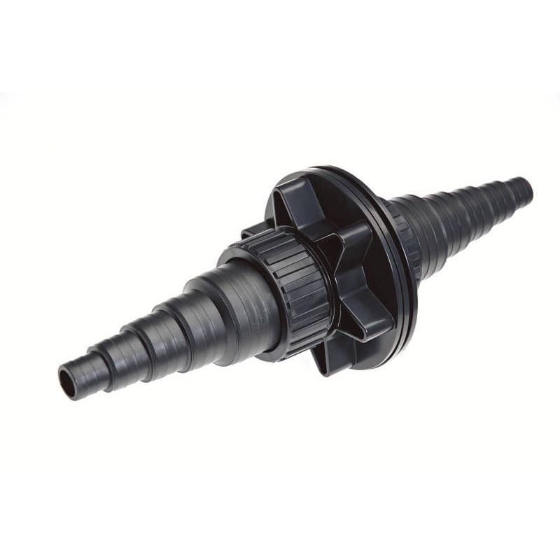 Sada umožní bezpečný průchod jezírkovou folii. Stěnová průchodka s hadicovými trny z obou stran pro průměr hadice 3/4" - 2". Včetně průchodky pro kabel.