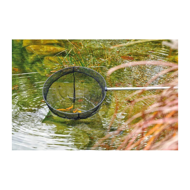 Teleskopický jezírkový podběrák Pond Net OASE. Síťka na ryby v jezírku. V průměru 38 cm velký, kulatý podběrák na ryby od OASE s velikostí ok 6 mm umožňuje bezproblémové vložení a vylovení ryb bez zranění. Je vhodný taky pro jezírka s chovnými rybami jako jsou například kapři KOI. Je zvlášť praktický pro větší jezírka. Teleskopická násada je z eloxovaného hliníku, dá se vytáhnout ze 113 cm až na 180 cm.