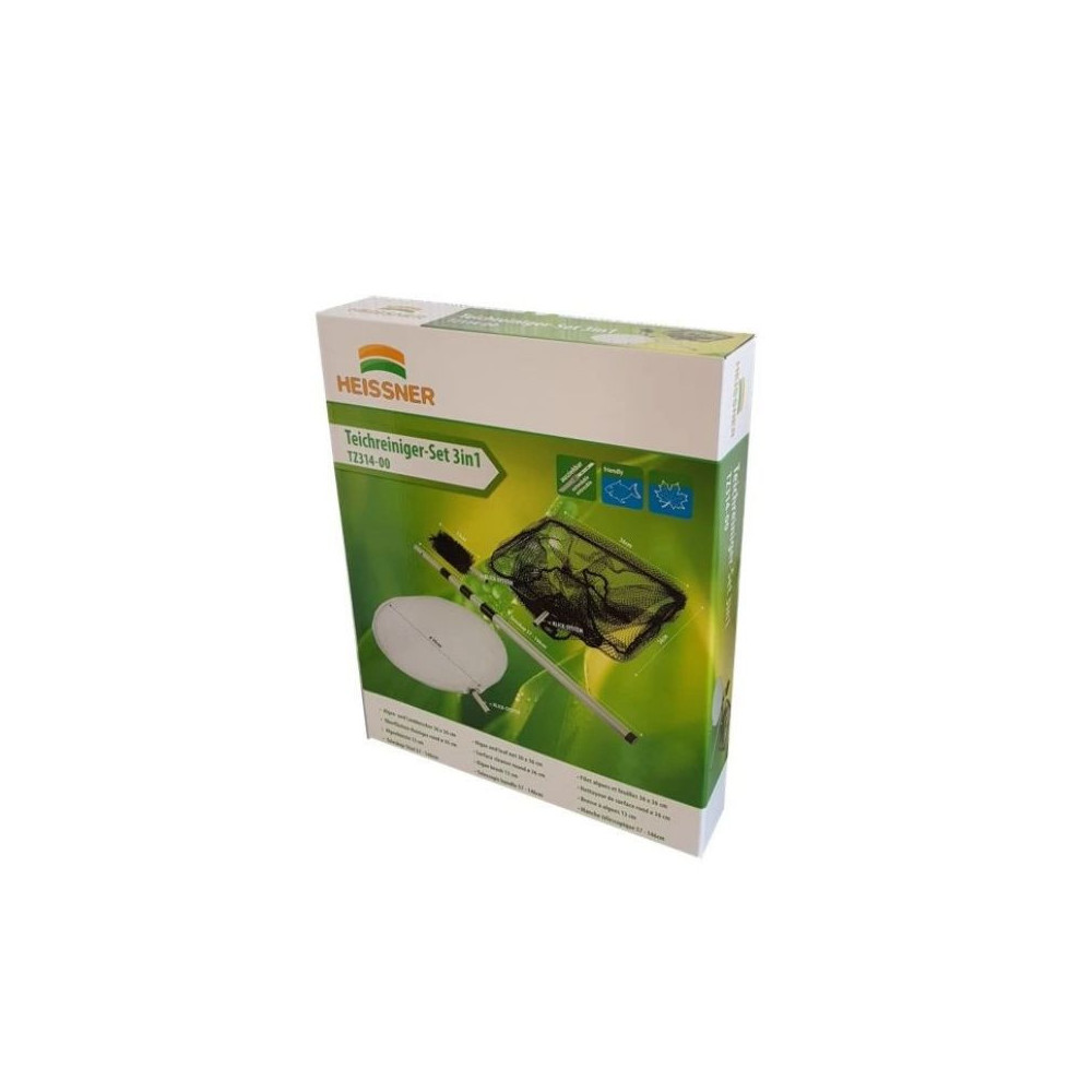 Nářadí na čištění jezírka Heissner TZ314-00 je praktická sada se dvěma síťkami, kartáčem na řasy a teleskopickou násadou. Umožňuje snadné odstranění listí, nečistot i vláknitých řas z jezírka po celý rok.