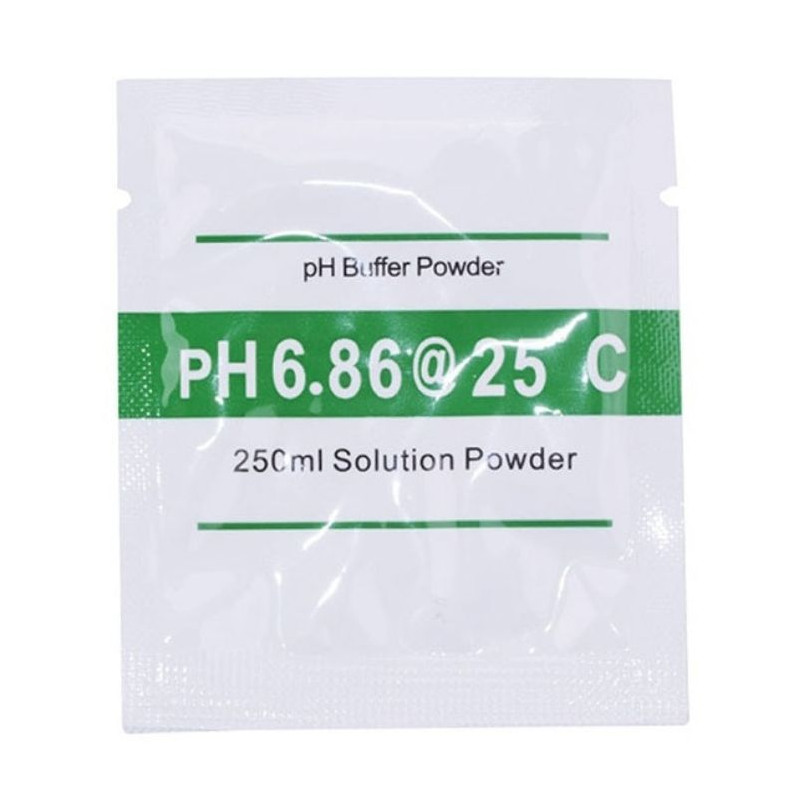 Kalibrační roztok pH 6,86: Tento roztok je ideální pro kalibraci pH metrů, zejména pokud očekáváte měření v mírně kyselém až neutrálním rozmezí. Je dostupný ve formě prášku, který se rozpouští ve 250 ml destilované vody o teplotě 25 °C. Takto připravený roztok lze použít opakovaně po dobu 3–4 měsíců, pokud je skladován v uzavřené nádobě na chladném a tmavém místě.