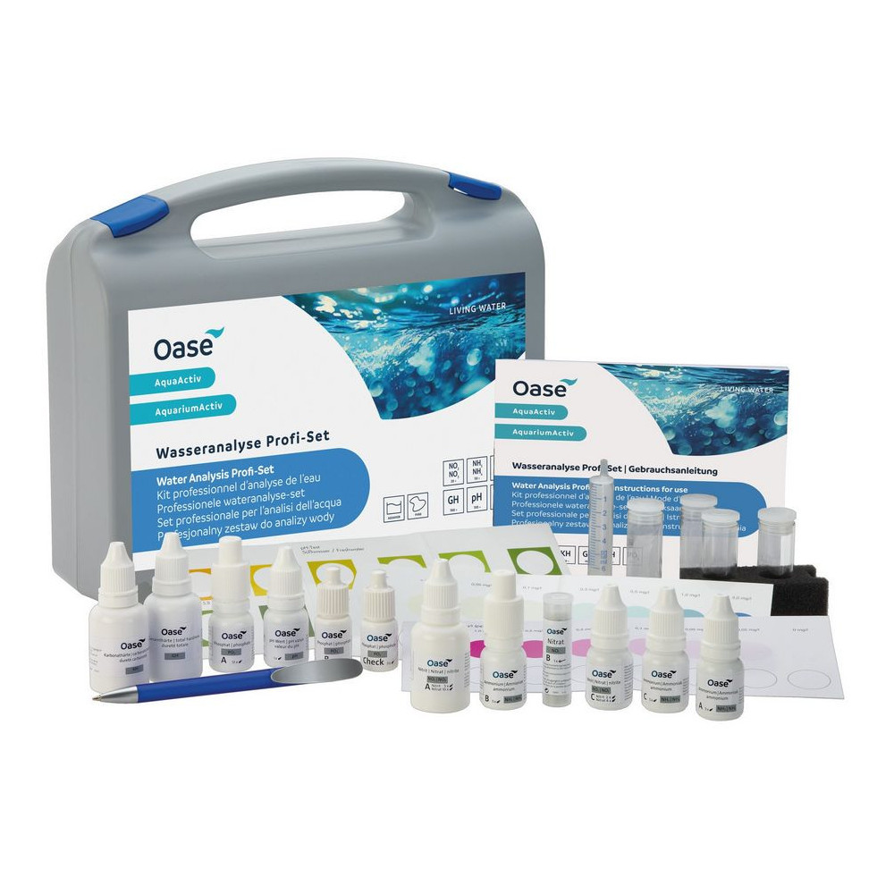Profi kapkovací roztoky na měření vody AquaActiv Water analysis Profi-Set v pěkném kufříku (podobné sera KOI AQUA TEST BOX), které ocení každý zkušený majitel jezírka. Testy vody v jezírku pro přesné stanovení všech důležitých parametrů jezírka pH, GH, KH, NO2, NO3, PO4, NH4, NH3. Se stálou kontrolou kvality vody AquaActiv Water analysis Profi-Set lze rychle a snadno preventivně zasáhnout proti např. řasám, aniž je nutno používat chemické přípravky. V sadě fosfátový test včetně roztoku pro kontrolu skladovatelnosti, měřicího příslušenství, barevných tabulek a užitečných aplikačních pokynů se vyznačuje obzvláště jednoduchým vyhodnocením s online laboratoří OASE.