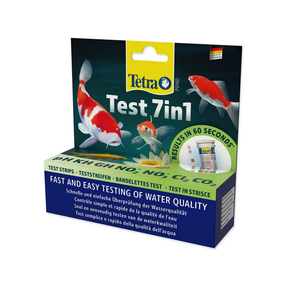 Testy vody v jezírku Tetra Pond Test 7v1 nyní dokážet změřit sedm důležitých parametrů, díky kterým můžete včaszasáhnout a udržovat vysokou kvalitu vody pro své šupinaté miláčky.