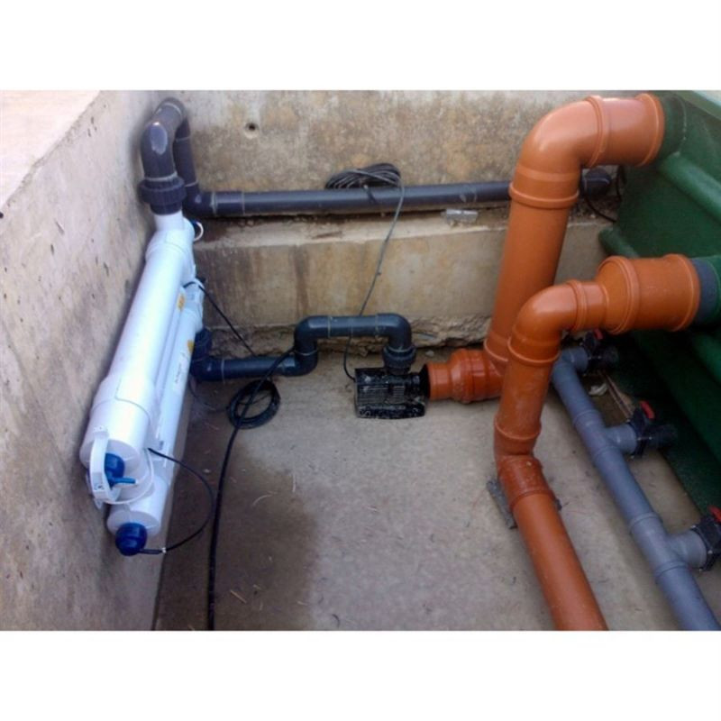 Na vývody UV lampy připojte hadice. Jeden konec hadice nasaďte na výstup čerpadla a druhý na vstup do jezerního filtru.