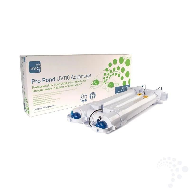Profesionální UV-C lampa TMC Pro Pond Advantage 110 W s dvojicí UV zářivek Philips. Vhodná pro velká jezírka i KOI nádrže až do 110 m³. Extrémně vysoká účinnost, dlouhá životnost, masivní průtok až 36 000 l/h. Nejuznávanější UV lampa na trhu.