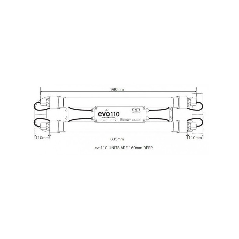 Evolution Aqua UV lampa pro jezírka EVO UV-C 110W Eastern s napojením 63 mm je profesionální UV-C zářič likvidující struktury řas a bakterií. Odolná a efektivní Profi UV lampa pro čištění vody pokud možno bez chemie. UV zářič Evolution Aqua Evo110 je navržen jinak než ostatní modely této řady, protože dvě 55 wattové žárovky běží paralelně v celém robustním bílém pouzdru z PVC s připojením připraveným pro připojení na 2 palcovou trubku. Tato konstrukce znamená, že Evo110 UV splňuje potřeby domácích i komerčních instalačních techniků, kteří hledají velkou spolehlivost a efektivní a ekonomický výkon .