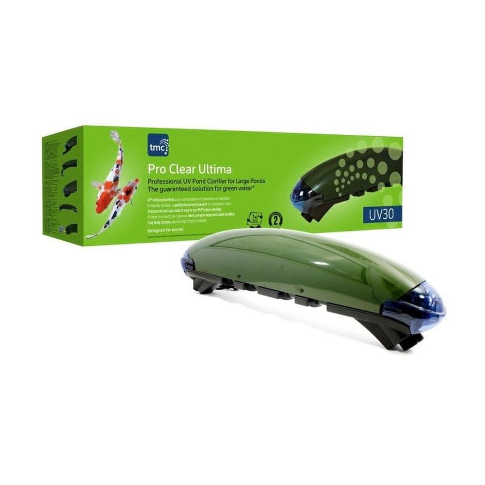 Rybníčková UV lampa TMC Pro Clear Ultima 30 W je modernizovaná a vysoce účinná UV-C lampa určená pro jezírka a akvarijní nádrže. Nový model je vybaven možností připojení na 63mm hadici, která minimalizuje ztráty průtoku a umožňuje plně využít výkon UV zařízení.