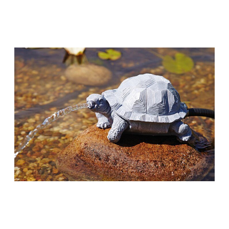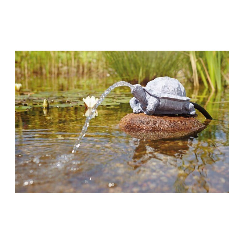 Atraktivní chrlič vody Želva Pontec je vyrobená z polyresinu, který je odolný proti povětrnostním vlivům{chrlic-zelva} Design světlešedého kamenného vzhledu pro dekoraci vodní nádrže opticky neruší vzhled zahrady. Pro napájení vodní dekorace budete potřebovat čerpadlo do jezírka o výkonu 750 l/h. Můžete si vybrat cirkulační čerpadlo i silnější a rozdělit jeho výkon např. na vodotrysk.