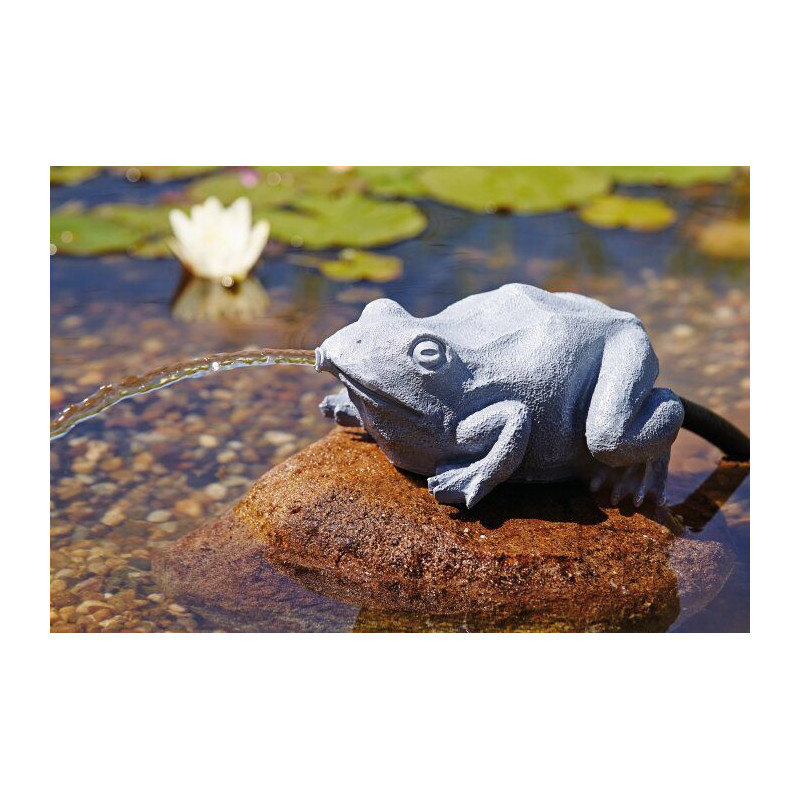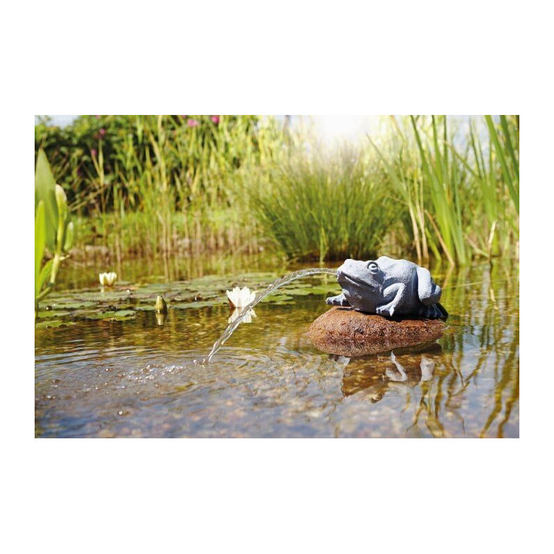 Pontec vodní chrlič Žába z UV odolného materiálu. Figurku připojíte na své čerpadlo o průtoku cca 750 l/h a postavíte na břeh jezírka.