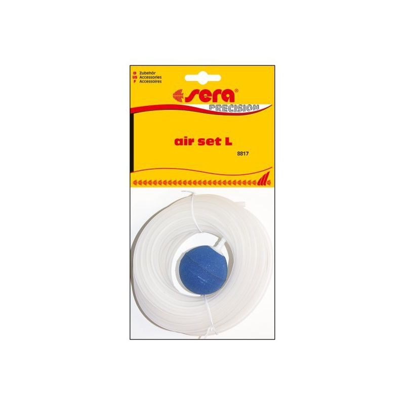 Vzduchovací hadička 10 m s kamenem Sera Air set L Pond je vhodná pro vzduchovací motorky Sera Air a další vzduchovací kompresory jiných značek. Sada obsahuje 10 m hadičky a těžký vzduchovací kamínek nejlepší kvality. Doporučuje jako doplňková k sera air 550R pro vzduchování jezírka v létě nebo proti jeho zamrznutí v zimě.