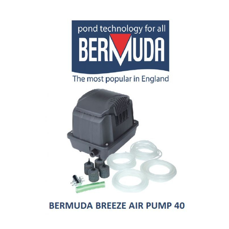 Bermuda Breeze Air Pump 40 – Výkonné vzduchování do jezírka s průtokem 2400 l/hod. Kompletní sada se 4 vzduchovacími kameny a 10m kabelem. Zajišťuje kyslík v létě a brání zamrznutí hladiny v zimě. Příkon pouhých 25 W, ideální pro středně velká jezírka.