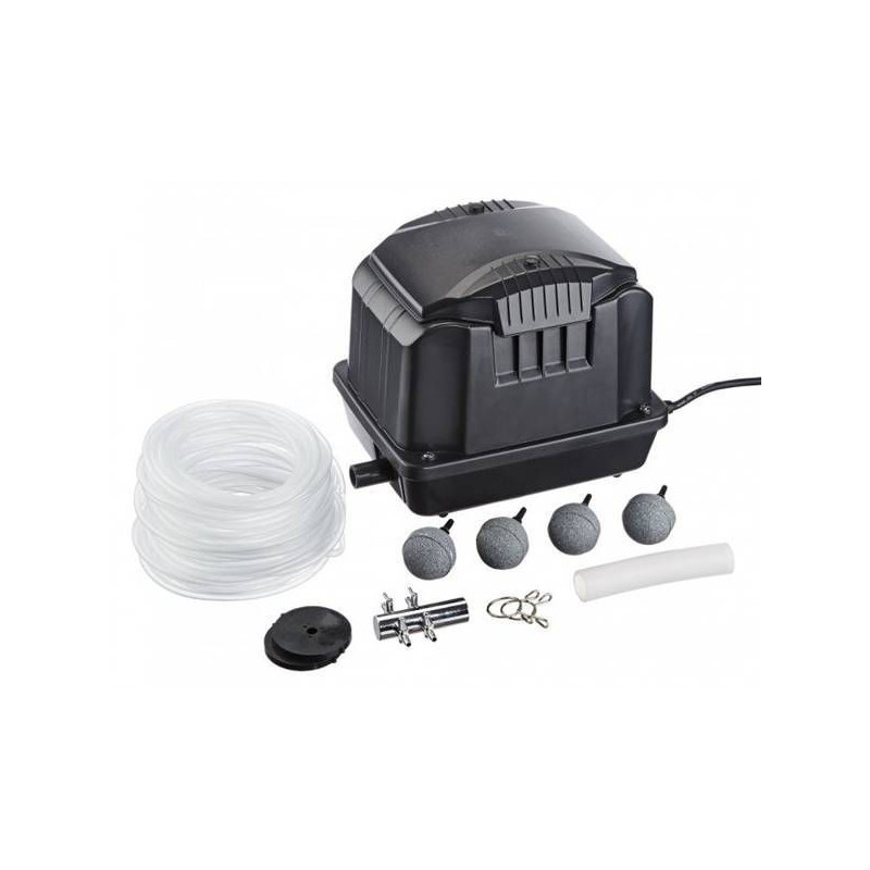 Vzduchovací motorek nasává vzduch, který je poté pomocí hadiček a vzduchových kamenů rozptýlen do vody. Vzduchové bublinky zvyšují obsah kyslíku ve vodě a zajišťují tak optimální podmínky pro život v jezírku.