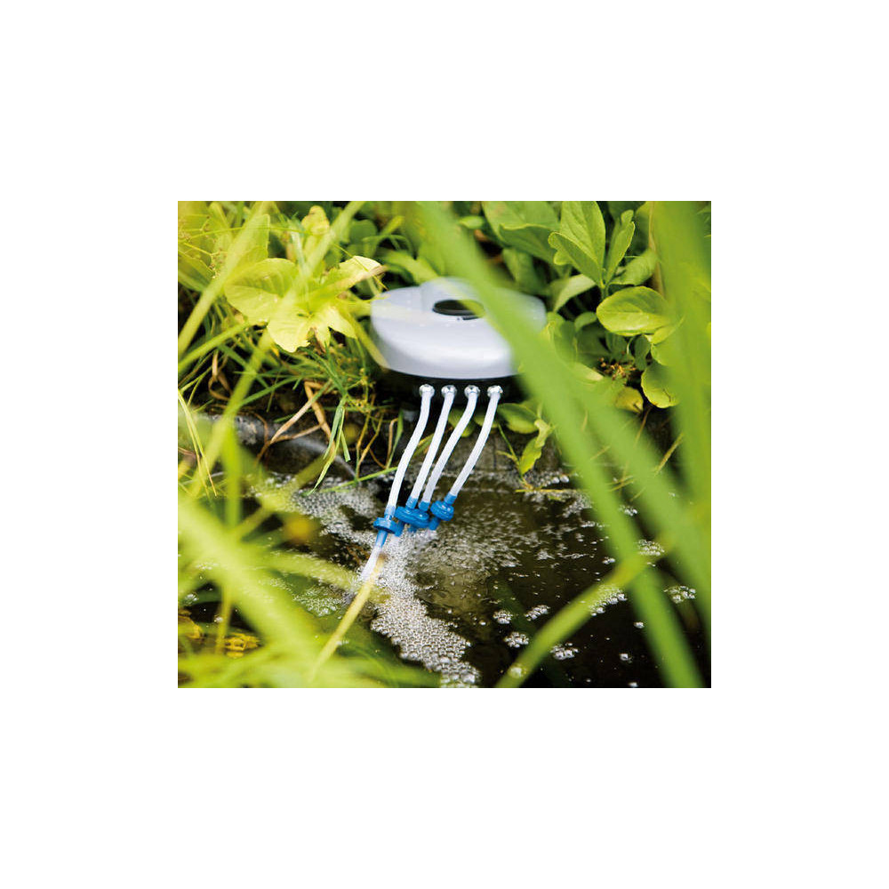 Vzduchovací motorek Heissner Aqua Air TZ615, 720 l/h, pro zvýšení kyslíku v zahradním jezírku o objemu až 12000 litrů vody. Vzduchovací kompresor má čtyři výstupy pro vzduchovací hadičky a regulaci množství vzduchu. Jezírkové venkovní vzduchovadlo má rozhodující význam pro živočichy a rostliny v rybníčku má dostatečný přísun kyslíku. Zvláště v létě, kdy se voda díky slunečnímu světlu výrazně prohřívá, může dojít k nebezpečnému poklesu obsahu kyslíku v rybníčku. Vzduchový kompresor je nutno umístit výše než je vodní hladina. Provzdušnění a čeření vody v rybníčku podporuje optimální biologickou rovnováhu a současně zvyšuje účinnost filtrace.