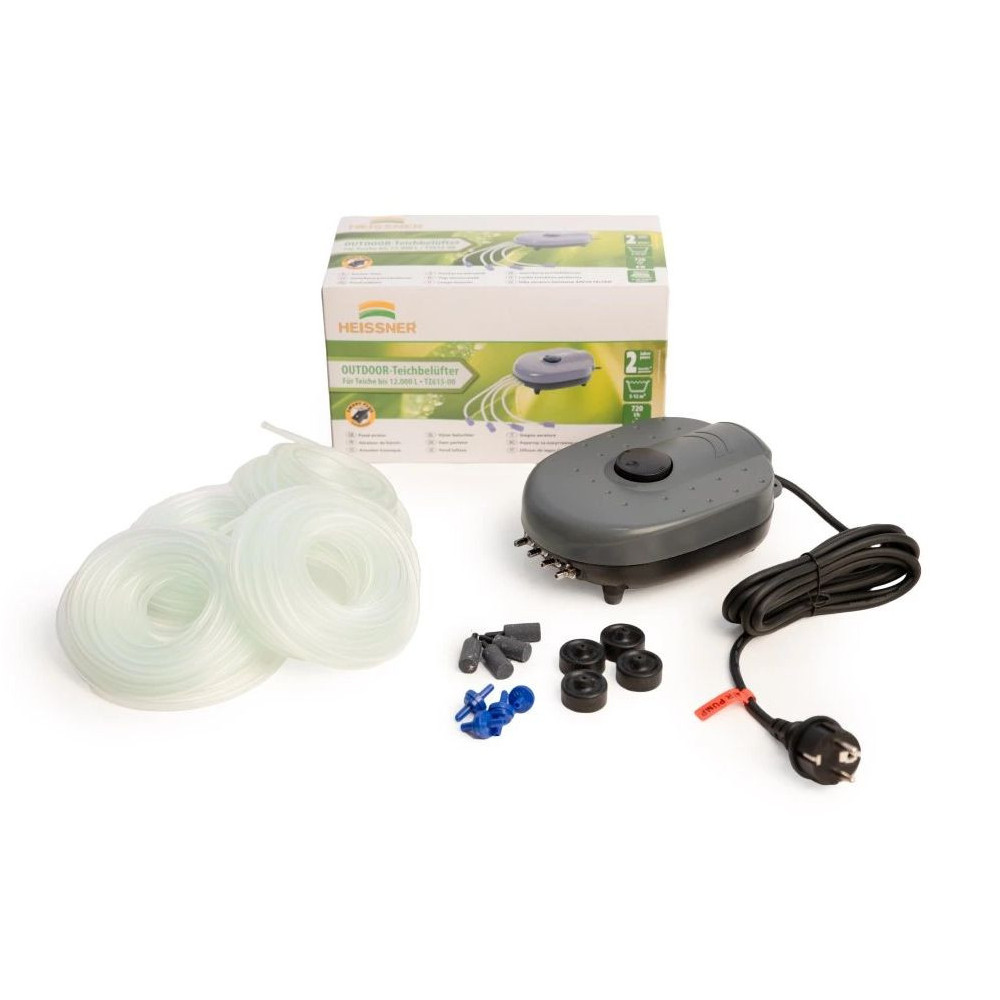 Vzduchové čerpadlo Heissner TZ-615 pro vzduchování do jezírka až 12 m3 v setu s hadičkami a vzduchovacími kameny.