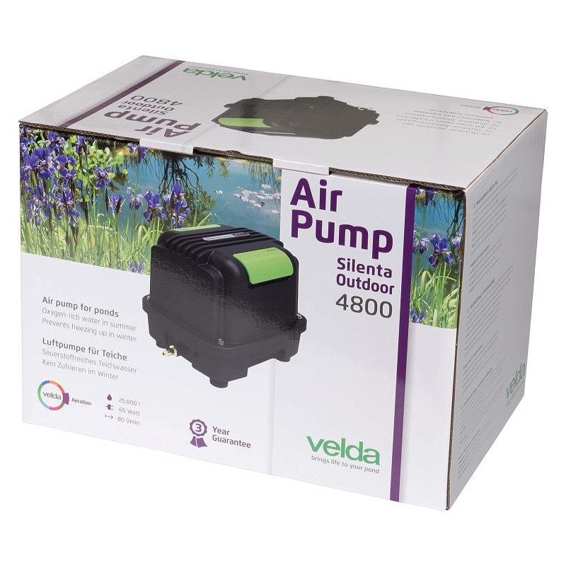 Profesionální vzduchovací set vzduchovací motorek VELDA SILENTA 4800 dva velké kameny GIANT a hadičky pro jezírka o velikosti do 25 m3