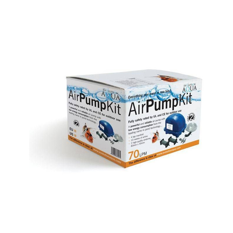 Vzduchovací kompresor AIRTECH 70 v setu od značky Evolution Aqua. Kompresor Airtech 70 SET je dodáván včetně 2 ks vzduchovacích kamenů, vzduchovacích rozvodů. hadiček a napojovacího kolínka.