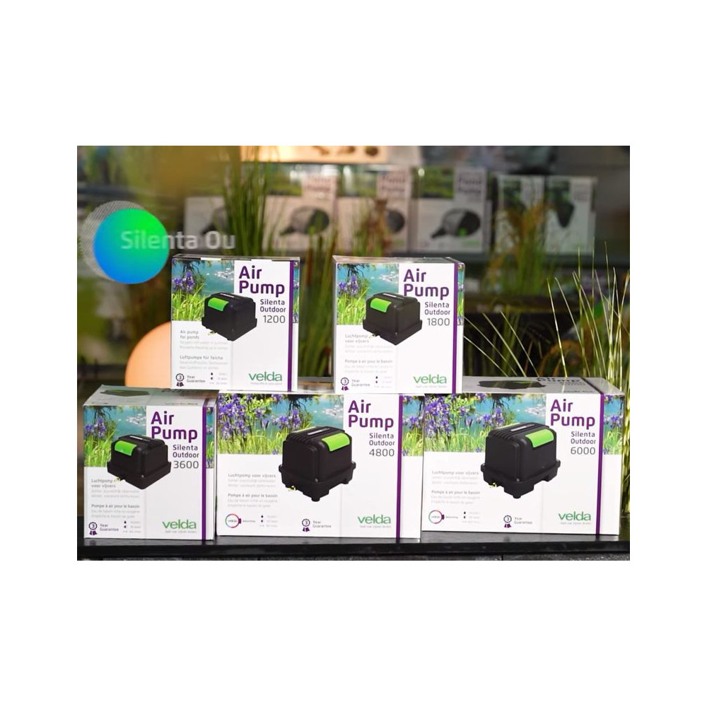 Velda vzduchovací kompresor SILENTA PRO pro jezírka v sadě s hadičkami a kameny na vzduchování má výkon 6000 l/h.