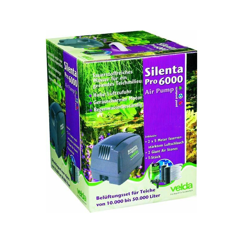 Profesionální vzduchovací sestava SILENTA PRO 6000 pro vaše jezírko pro celoroční provoz. Kompletní vzduchovací sestava pro jezírka o velikosti cca 30 a více m3. Výkon 100 litrů/minutu je dostatečný pro středně velká jezírka.