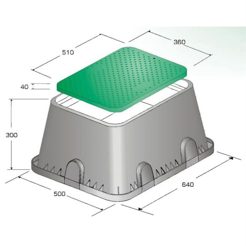Ventilová šachtice PLASTICA ALFA STANDARD 510 s víkem pro systém zavlažování má rozměry 51 x 38 x 27 cm.