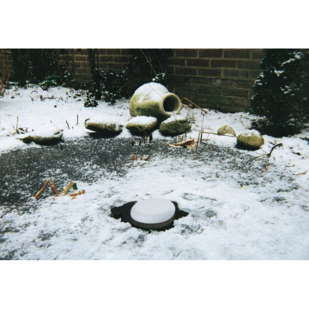 Polystyrenový plovák, který zajistí, aby hladina vody v jezírku nezamrzla až do teploty -10° C. Bez elektřiny plovák brání zamrznutí jezírka.