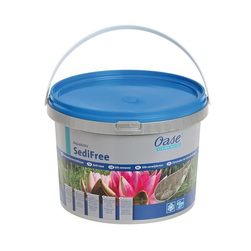 Osvědčený jezírkový odbourávač (likvidace) bahna a kalu OASE AquaActiv SediFree 5000 ml na 100 m3 vody napomáhá biologickému redukování organických usazenin ze dna jezírka. Odstraňuje zbytky organického bahna/naplavenin. Směs mikroorganismů a enzymů, které rozkádají lignin a celulózu, což znamená zbytky řas, listí, rostlin atd. Použití přímo na zabahněné části jezírka a kamínkové zóny, mělčiny. Používejte vždy až teplota vody dosáhne nejméně15° C.